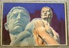 By way of entertainment I soldered some scrap pieces of silicon bronze strip to some equally scrappy pieces of sterling silver.The result was then pushed through the rolling mill with some copper mesh to texture, and the surface subsequently polished a little. It looks as though it will be very suitable for suggesting to students for two-coloured rings. One caveat is that silicon bronze tarnishes rather rapidly when worn by some people, including myself. I subsequently found that some craft plastic mesh, so fine as to be almost transparent, was as good at putting an impression on the metal when rolled through the mill. My reading of Oppi Untracht's texts suggests this is perhaps a simple version of 'married metals'.